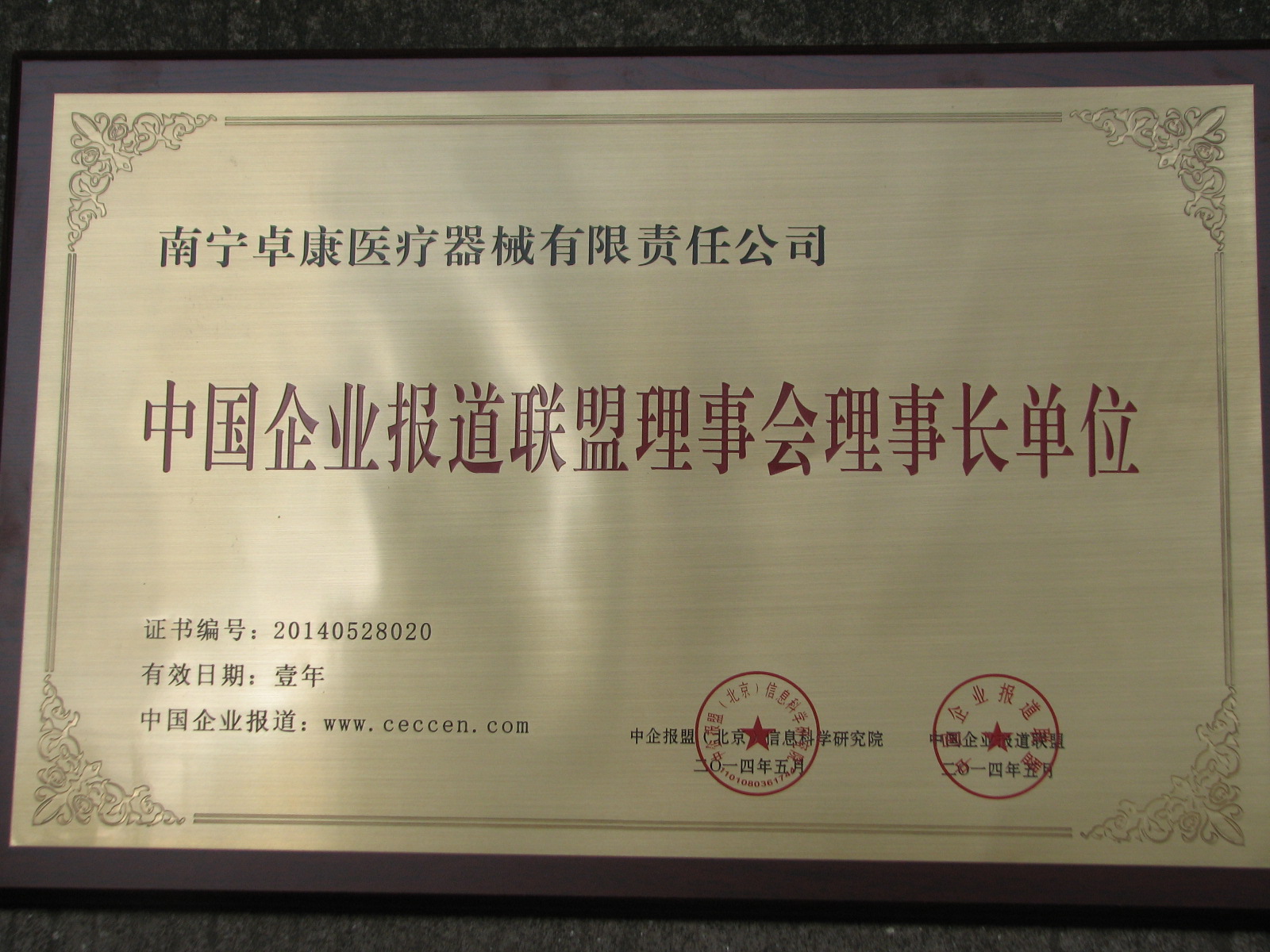 陸江榮獲引領(lǐng)行業(yè)發(fā)展杰出貢獻人物證書 --------卓康公司榮獲全國質(zhì)量、服務(wù)、信譽AAA級品牌證書